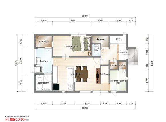 正方形で10坪台の平屋間取り