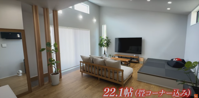 テレビは壁付けにすることで、テレビ台もすっきりと。また小上がりの畳スペースは、ホームパーティなどで人を招く際に椅子として使ったり、来客者の寝室スペースとしても活用可能。まるで洗練されたモデルハウスのようです。