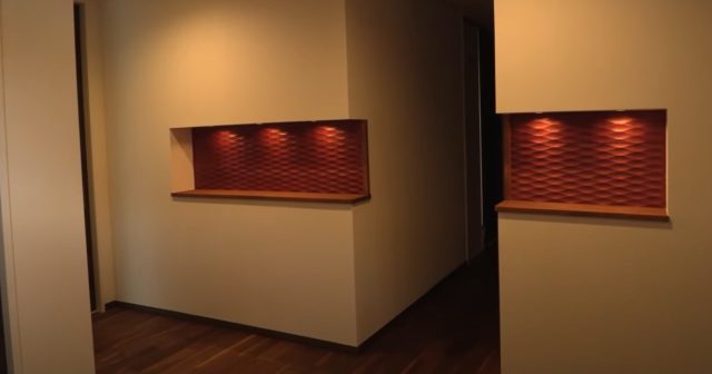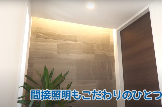 ホテルライクな印象にするには、照明にもこだわってみるのがおすすめ。玄関の壁に間接照明を設けると、高級感のある仕上がりになります。