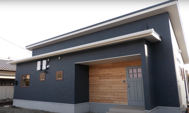 紺色の外観に木材をふんだんに使った玄関。白い軒天を使用することで、メリハリのあるおしゃれな外観に仕上がっています。さて、内装はどのようなおしゃれ空間になっているのでしょうか。