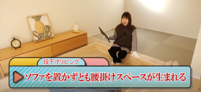 小上がりスペースで思い思いの過ごし方ができるリビング